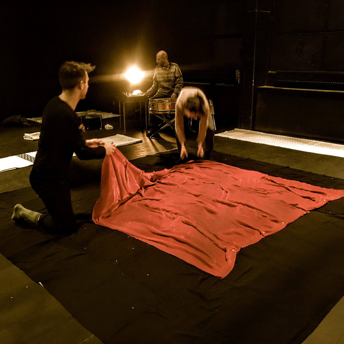 Arbeidet startet i musikken. Musikerne dannet det metodiske springbrettet i prosessen, i form av inngående kjennskap til skapende improvisasjon og samspill. Trommeslageren Tor Haugerud har vært en fast samarbeidspartner i Teater Fot siden starten, her i samspill med sangerne Siri Gjære og Rohey Taalah / Sunniva Hovde. Musikerne hadde med seg musikalske ideer og små komposisjoner som vi øvde inn sammen. I samspillet har musikalske improvisasjonsprinsipper smittet over på det fysiske og teatrale arbeidet. Skuespillerne Siri Schnell Juvik, Gunhild Hjertaas og Ibrahim Fazlic har sammen med musikerne utviklet et samspill der, musikk, kostymer og objekter ble aktive agenter på scenen. Musikk, sang, og handling fikk utvikle seg sammen med materialenes mer abstrakte former og bevegelser.