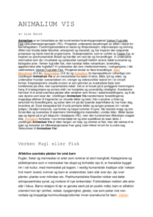 Å oversette disse affektene til en skjerm der bilder og tekst utgjør materialiteten oppleves som en slags fremmedgjøring som skaper distanse til det romlige og kroppslige. Samtidig kan denne transformasjonen skape en annen form for nærvær, der former, farger og detaljer får større betydning. Tekster og tanker vil også bli lettere tilgjengelig for den som kikker inn i vårt Animalium Vis.