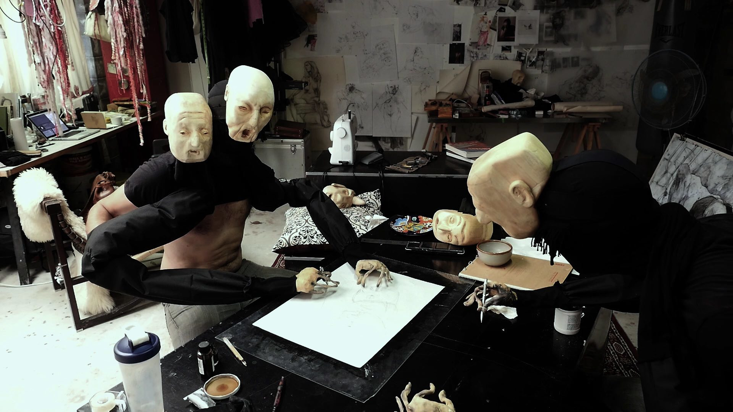 The difficulty of extracting puppet theatre from puppet practice is evidenced in two puppet exhibitions: Objects Do Things at Warsaw's Ujazdowski Castle in 2016 used theatre and television to frame its innovative puppet-art exhibition.12 Previously, in 2008, the Institute for Contemporary Art in Philadelphia staged an exhibition titled The Puppet Show. The curator Ingrid Schaffner warned that it was ‘not an exhibition of puppet theatre’; rather, the show intended to consider ‘the imagery of puppets in contemporary art’.13 Without getting mired in semantic arguments about ‘imagery’, I will subtly but definitively twist this position. My research also considers the imagery of puppets. However, I mean imagery by puppets — puppets making images to be exhibited. It is important that these little conscripts are puppets, but this designation isn't without problems. Inevitably, discourses on puppets devolve into categorisations. When is a puppet a doll? A mannequin? A machine? Is a mask a puppet? Are all performing objects puppets? Are robots puppets? Sex toys? Digital avatars? There exists sufficient puppet literature examining these ambiguities in forensic detail and charting terminologies such as the neologism ‘puppeteer’ and its lavish evolution into ‘manipulactor’.14 Further, puppets are constantly pursued along the spectra between animate/inanimate, living/dead, subject/object, self/other, and present/absent.15 I have chosen puppets because there is a correspondence between discourses in life drawing and portraiture concerning illusion and subject and those in puppet and theatre studies concerning the agency and role of the puppet. Like a life drawing, a puppet is a thing, a sign of someone that is not a thing, and a sanction to behave ‘as if’ the puppet is not a thing.16