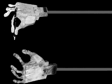 My* drawings and photographs are made by puppets. Art, literature and puppets are well enmeshed, but examples of artists who defer to puppet-practitioners or are assimilated by puppets are far less common. Exceptions include cinematic and literary horror/science fiction characters; the clever tick-tock drawing automata built by Pierre Jaquet-Droz, Henri Maillardet and John Nevil Maskelyne; and the drawing machines of Jean Tinguely, Desmond Paul Henry, Cameron Robbins and other contemporary artists and tinkerers. In these cases, however, artists’ utopian, dystopian and whimsical pursuits are primarily contextualised by magic and technology. The more typical puppet/human confections in the visual arts are held in thrall of puppet theatre. The shadow puppets of Kara Walker and William Kentridge, David Shrigley’s misshapen animatronic models and Paula Rego’s studio puppets all fit within this rubric. Puppets, dolls and mannequins also converge in the works of Sophie Taeuber-Arp, Giorgio DeChirico, Hans Bellmer, Nathalie Djurberg, Sarah Lucas and Paul McCarthy, often to disrupt academic conventions and damn reactionary politics, but they remain ensconced in theatrical, filmic and sculptural realms. Adam Geczy summarises artists’ abiding puppet preoccupations in an analysis of Rilke in which he describes puppets as ‘a kind of pure corporeality in which the quandary of masks and appearances is resolved.’11 Certainly, a model of ‘pure corporeality’ is seductive, but even more seductive is handing over to ‘pure corporeality’ a camera, a sharp chisel or a stick of charcoal. Whether or not they ought to be given such tools is less apparent.