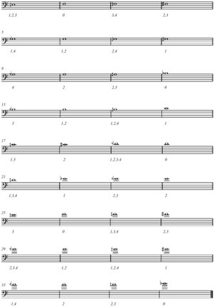 The aim was also to acknowledge the existing notation traditions as a basis for new notations of new sounds. The different playing techniques were organised into classes: multiphonics, articulation, microtonality, voice effects, and breathing sounds.