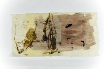 I am left handed, and cannot do anything with my right hand except hold a knife over my dinner plate. I am retraining myself; one day at lunch, without thinking, I pick up my fork with my right hand. But still, there is no mastery. There is gesture, intimacy, and indexicality. I roll a room-sized sheet of paper onto the floor and climb into/onto it: feeling the floor and then scratching at it ambidextrously with my tools, processing sound. It blasts and shimmers; the floor becomes feedback, I trace the shape of my objects onto the uneven paper surface and it becomes glitch. My charcoal-covered body rolls over the big paper, amplified. I feel the floor, lie still: listening. I'm embodied and roaming, displaced and wandering, encumbered and sounding. 8