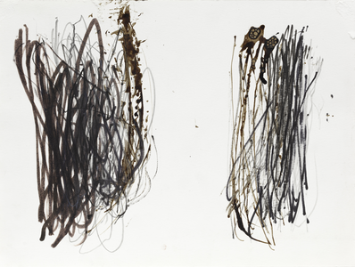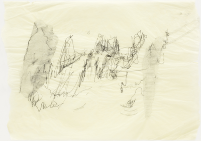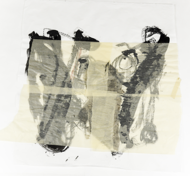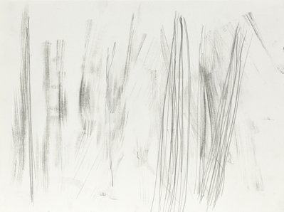 The drawings themselves became silent artifacts of a sonic process. While I am interested in these drawings on their own terms as visual objects, or—taken together—as an inscribed journal of a process, I'm also beginning to consider the potential for the drawings to re-sonify themselves: as open, graphic scores for myself or other performers to interpret. In this instance, I would encourage interpreters to explore oppositions and contrasts in relation to gesture, density and the shapes of sounds, and to also to consider ideas about transparency, as the performers become familiar with the different types of materials—especially paper—that I've used in making these drawings. (In this case, they might think about how one sound emerges through another, or think about how sounds are located in space in relation to each other.) In ensemble situations, performers might also wish to look at where marks are situated on the drawing page in relation to its edges, and then move to and through specific positions in a performance space that they see as corresponding to these locations, keeping in mind their proximity to and distance from other performers, as well as the physical boundaries of the performing area.