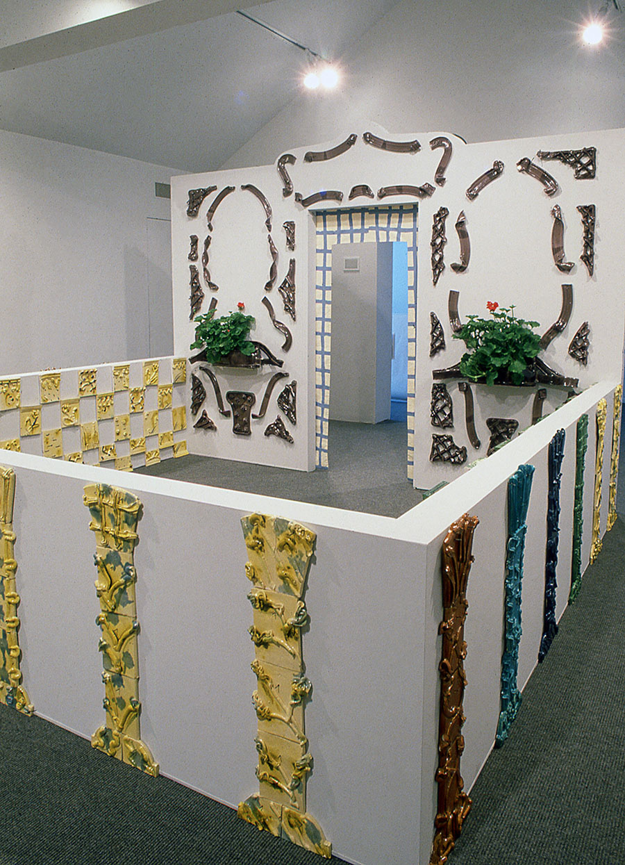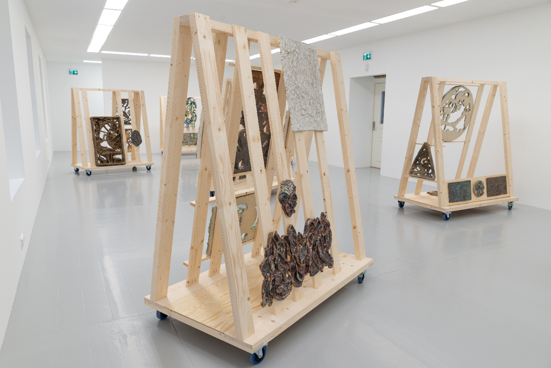 The exhibition Porous Worlds is an in depth-meditation of the relief form, exploring its presence in the context of art exhibition through specially made architectural exposition devices. These devices make it possible to position the reliefs in these structures in different ways, hence further exploring the different spaces the form can contribute to. The selection of works presents works made from porcelain, stoneware, and Parian clay, in reduction firing with wood and gas, and oxidation from the last four years. I write about the unfolding of the planning process around the exhibition, how it has gone through different stages, and how I have arrived at the final decisions.