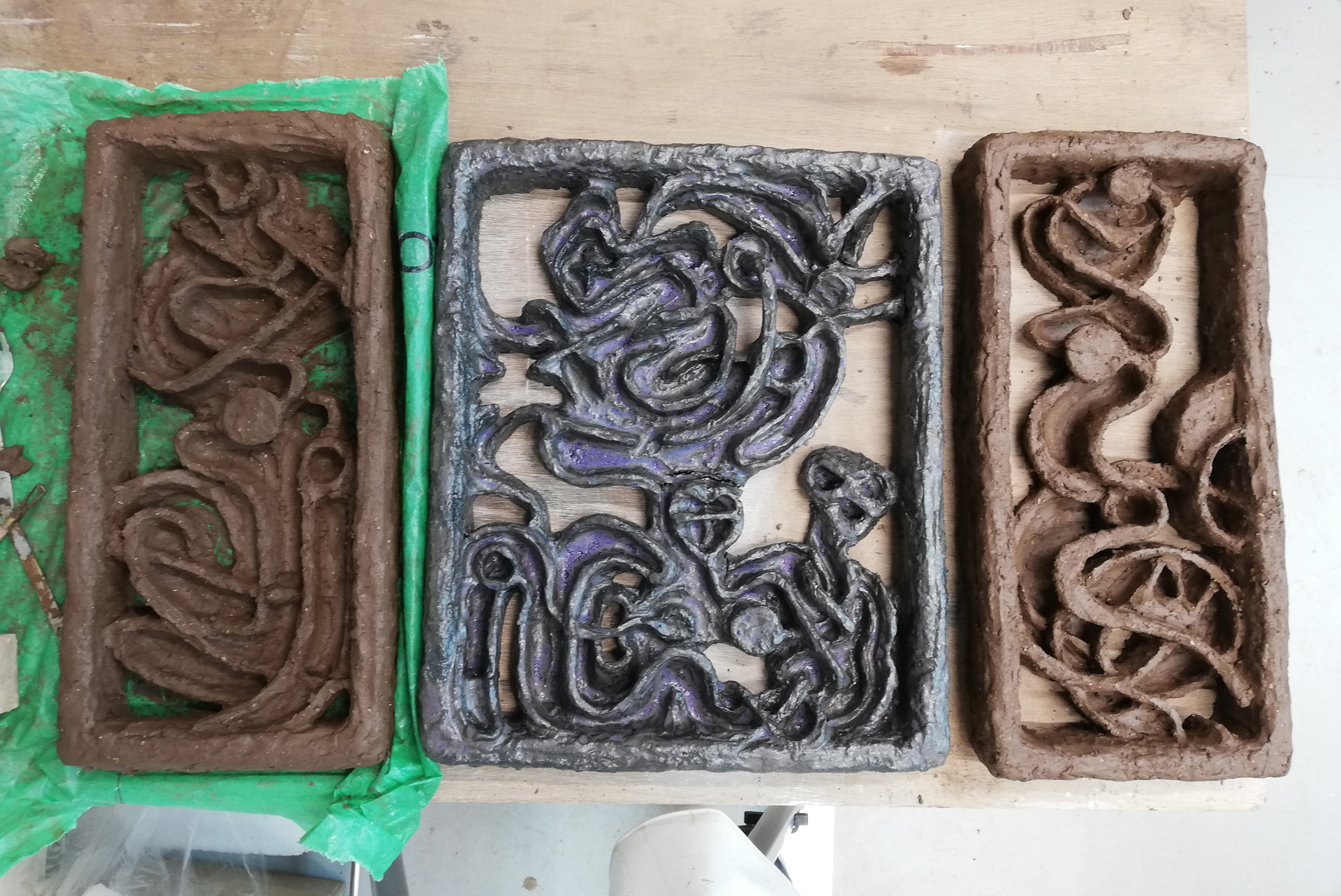 After deciding to look more into the relief as a form and finding out that it has a ghost-like presence in the contemporary art, I understood where my process and research had led me and decided to focus my project on it. Besides, the first thing I made when I started this project were reliefs, and I had carried out making them together with sculptures, so in a way this was a concern that had been present from the very beginning of the project. Because of the way ceramics is connected to the world, I think that the concept of containment is still associated in a way with reliefs.