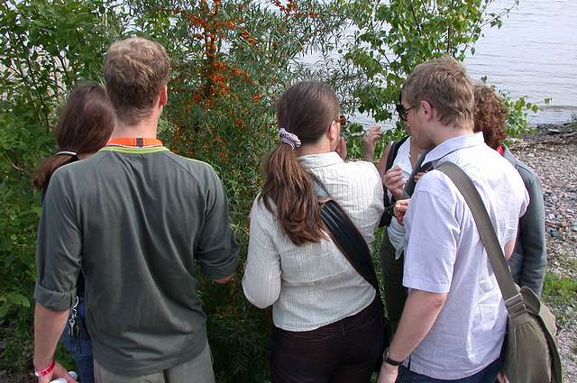 Figure 13. ISEA2004 audience members follow us re-walking the 'Arabianlenkki' renga walk route on the 21st August.