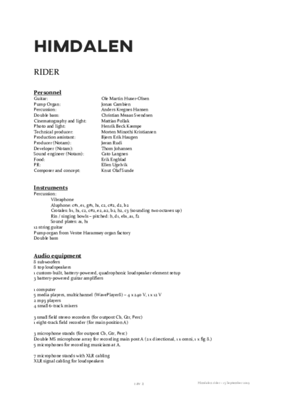 Himdalen film, 50 min. Composer / concept / audio editing: Knut Olaf Sunde, cinematographer / video editing: Mattias Pollak. Allowed for private and educational display. For public display contact Knut Olaf Sunde or Mattias Pollak.