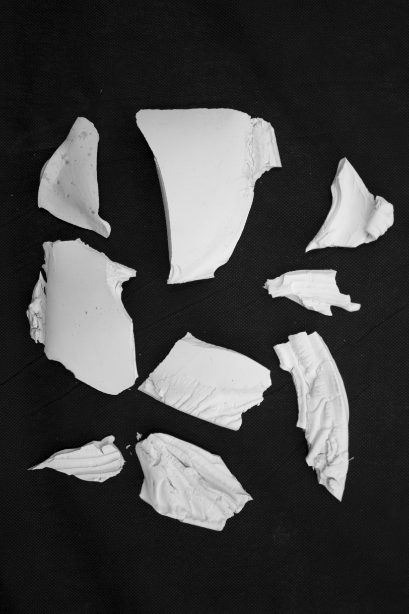 Pronounced with a soft 'g' is an exploration into the performative potential of gesso, a material that has previously been used as a support for painting. Traditionally made with rabbit skin and chalk (the body + the earth), Siân acts as an aural architect to release sound from the gesso vessels.