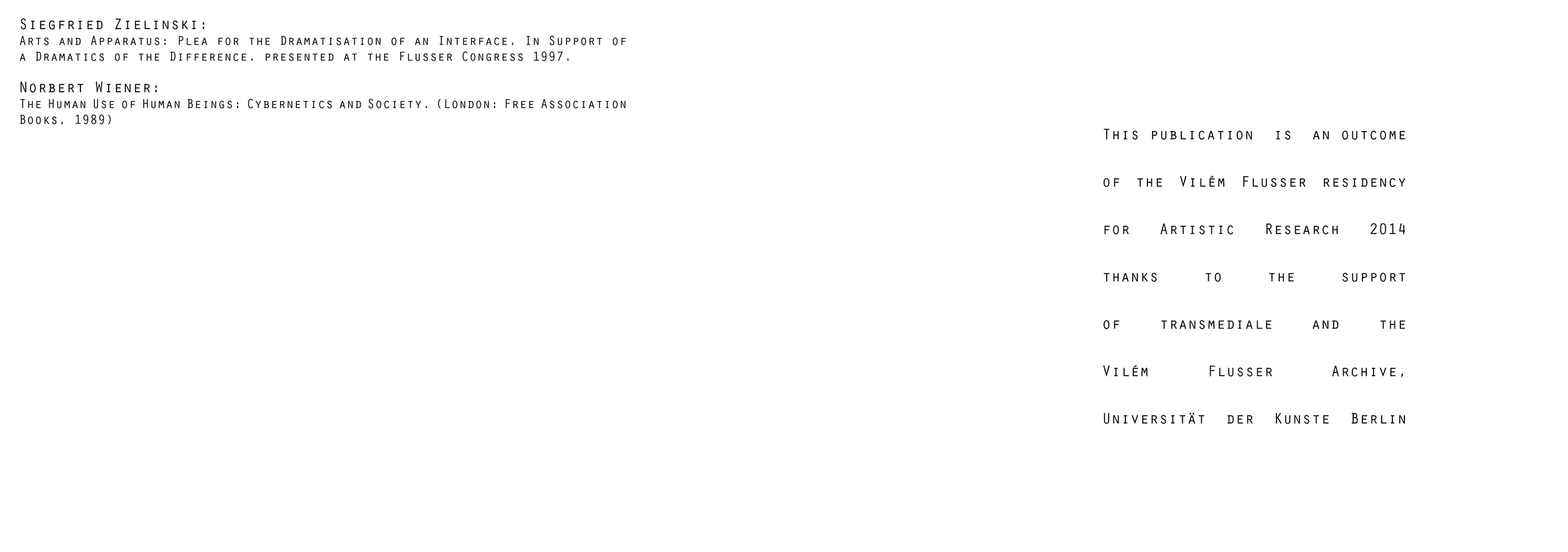 Compiled here are materials generated during transmediale's Vilém Flusser Residency for Artistic Research 2014.