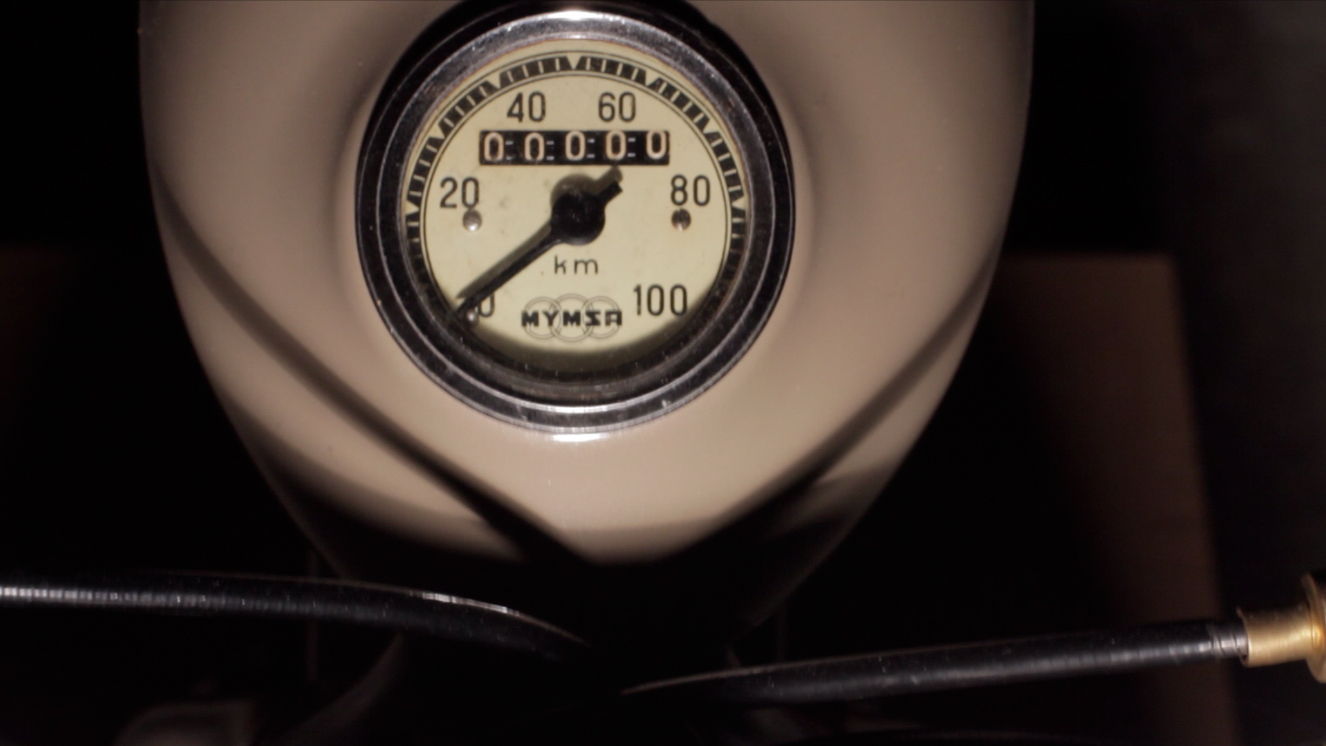 They lent me a motorbike and Joan, the one and only worker at the ‘museum’, brought it over to the film set at the Barcelona Fab-Lab. We signed a loan document and I paid an insurance fee that covered an item valued at €12,000 – a motorbike that was restored for exhibition purposes and does not run.