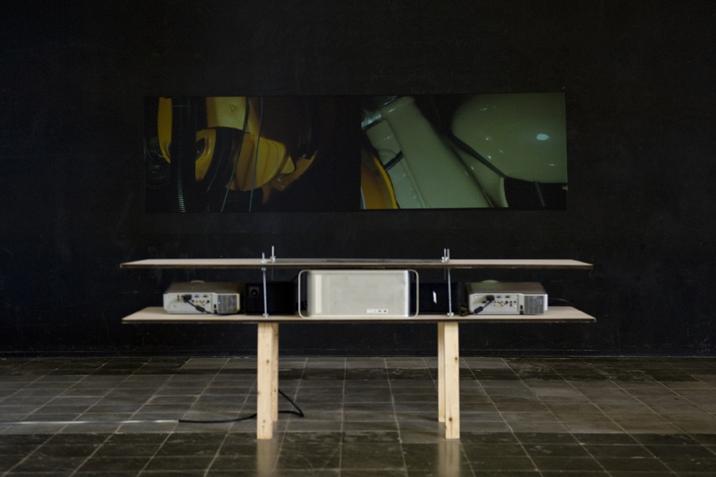 The idea of creating a video work exploring the question of how an industrial robotic arm would see a handmade product is used as a pretext to generate a meeting point for different local agents in the framework of the production of an art project titled 'Rodar y Rodear' ('To Shoot and to Surround') (2013). The heirs of a post-civil war motorbike manufacturer (MYMSA) and the Barcelona Fab-Lab found it interesting to take part in the production of this artistic project, which is a film event built on the idea of dislocation in the common uses of its leading actors: a motorbike restored as a museum piece and an industrial robotic arm programmed to produce the image of something that was fabricated with a pre-robotic sensitivity. This exposition explores the connections that arise between production processes in commercial cinema and the automotive industry, and the capacity that artistic research has to create a singular and significant space for mutual exploration.