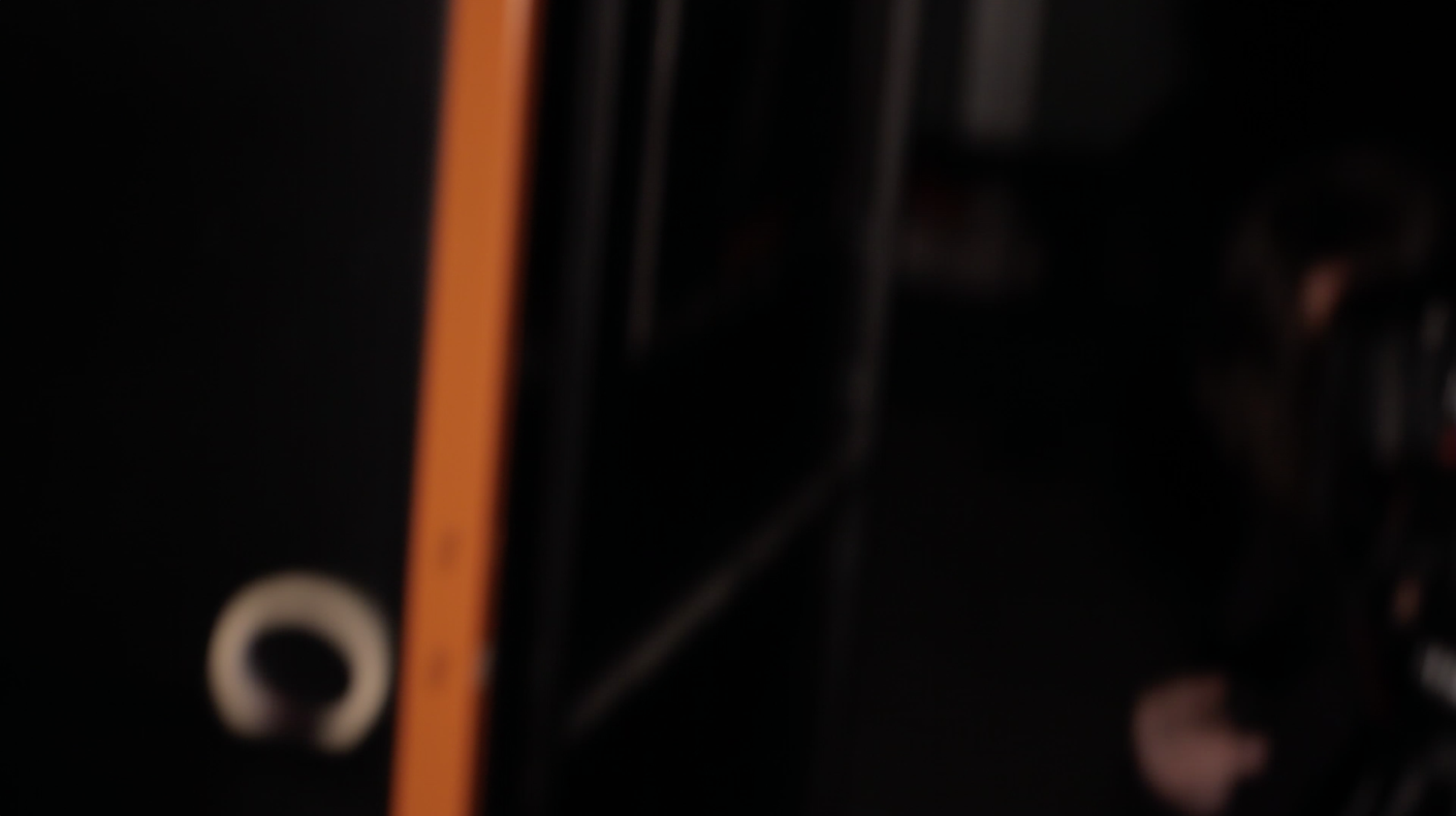 The other camera was attached to a tripod that filmed the arm at work. The KUKA arm performs certain security checks before it can perform any job, one of which refers to ‘the Kuka room’. The arm works inside a space limited by four walls and a door. If the door is open, the arm will not work. The reasoning behind this is that nobody should be in the room while the arm is at work. To trick this limitation we kept the door open by taping its latch, for this was the only possible position for the tripod to stand. In this second camera, the point of view became a constant, while focus and focal length were defined as variables.