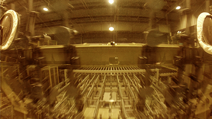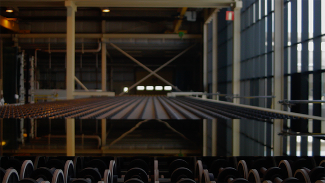 I was recently granted access to enter Guardian Industries’ production plant in Tudela with a camera, thanks to a close friendship with one of its workers. I produced a film that documents the production process of an architectural glass called ‘Gold 20’. There were particular kinds of images I was not allowed to take, among these any long shots of the plant. The way machines and production steps are distributed in space is perceived as sensitive information. The image of a computer screen where this layout is represented is perceived as equally dangerous.