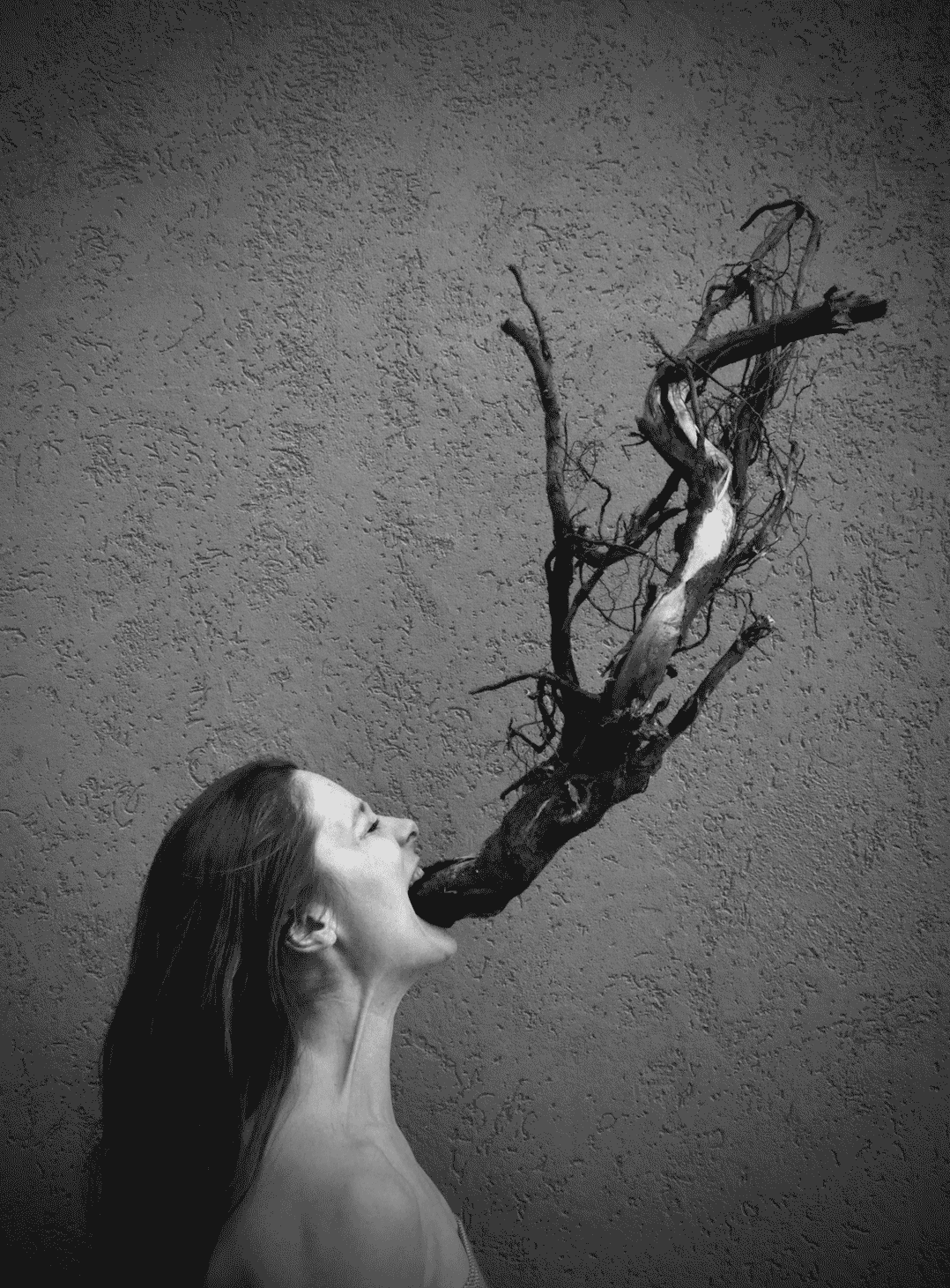 Within the practical part of this research I sort of literally translated the tree metaphor and made a tree root my aerial partner. I consciously use partner instead of 'apparatus' or object, because in order to apply these ideological concepts as proposed by Bennett to my field of aerial acrobatics, the 'object' as a seriously taken nonhuman body is in fact a co-creator of my piece. The suspended tree root in contrast to a more traditional apparatus like a trapeze has a sort of individual character, a unique natural, organic form, certain features of a 'personal' dynamic 'behaviour', a special texture and form.