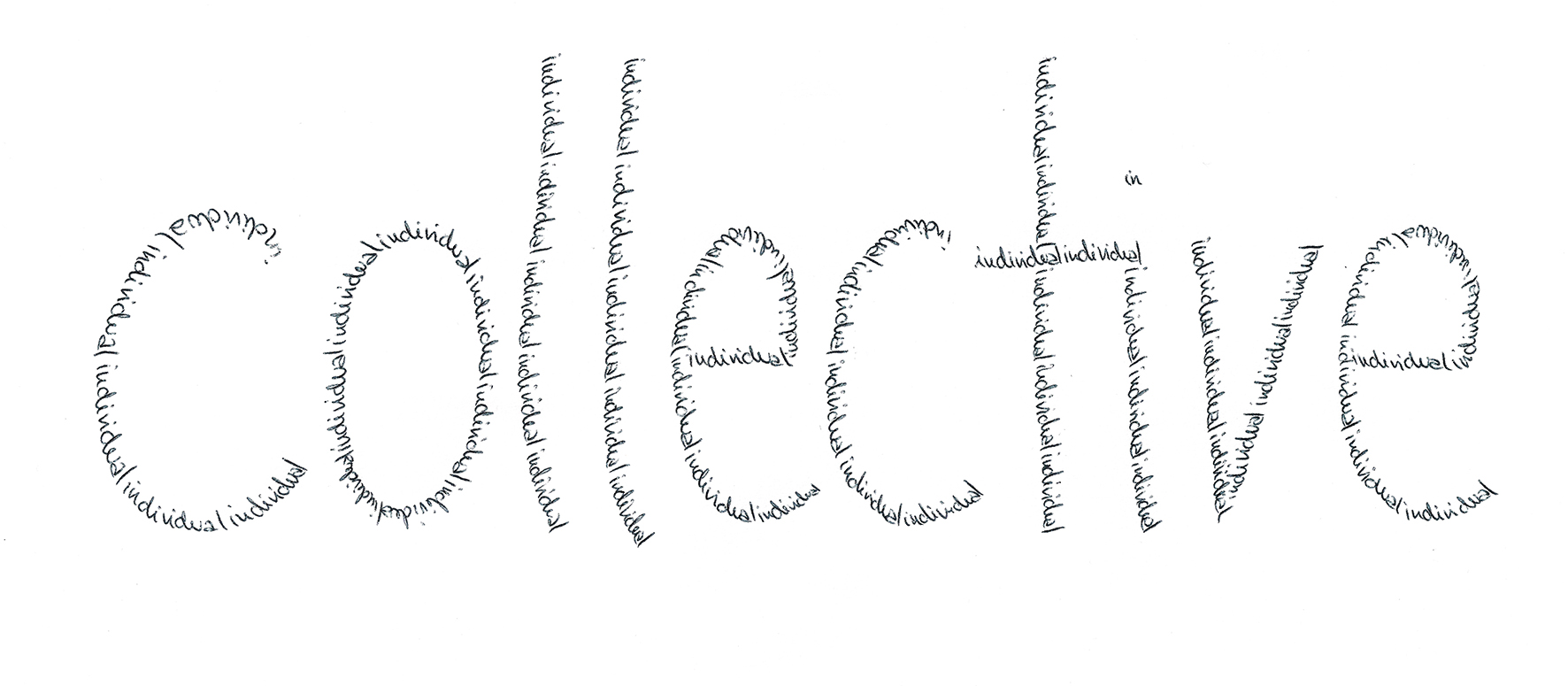 this typo-graphic illustration was my way to document my experience within the 4th Artistic Research Encounter (at Chateau Monthelon in October 2018) led by circus researcher Bauke Lievens and her team. For our group of 13 circus practioneers they simply just suggested various dialogue formats, the content was up for us to choose – the most present topic that emerged was the issue of individual & collective. I think circus does and will have to contribute a lot to this essential question of society.
