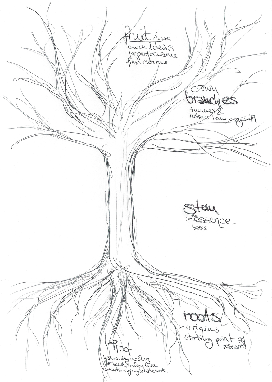 This conflict reflects my inner struggle over the process of this research. One of my early 'Mindmaps' I drew in the form of a tree, but I realized more and more that the project has been unfolding much more rhizomatically.