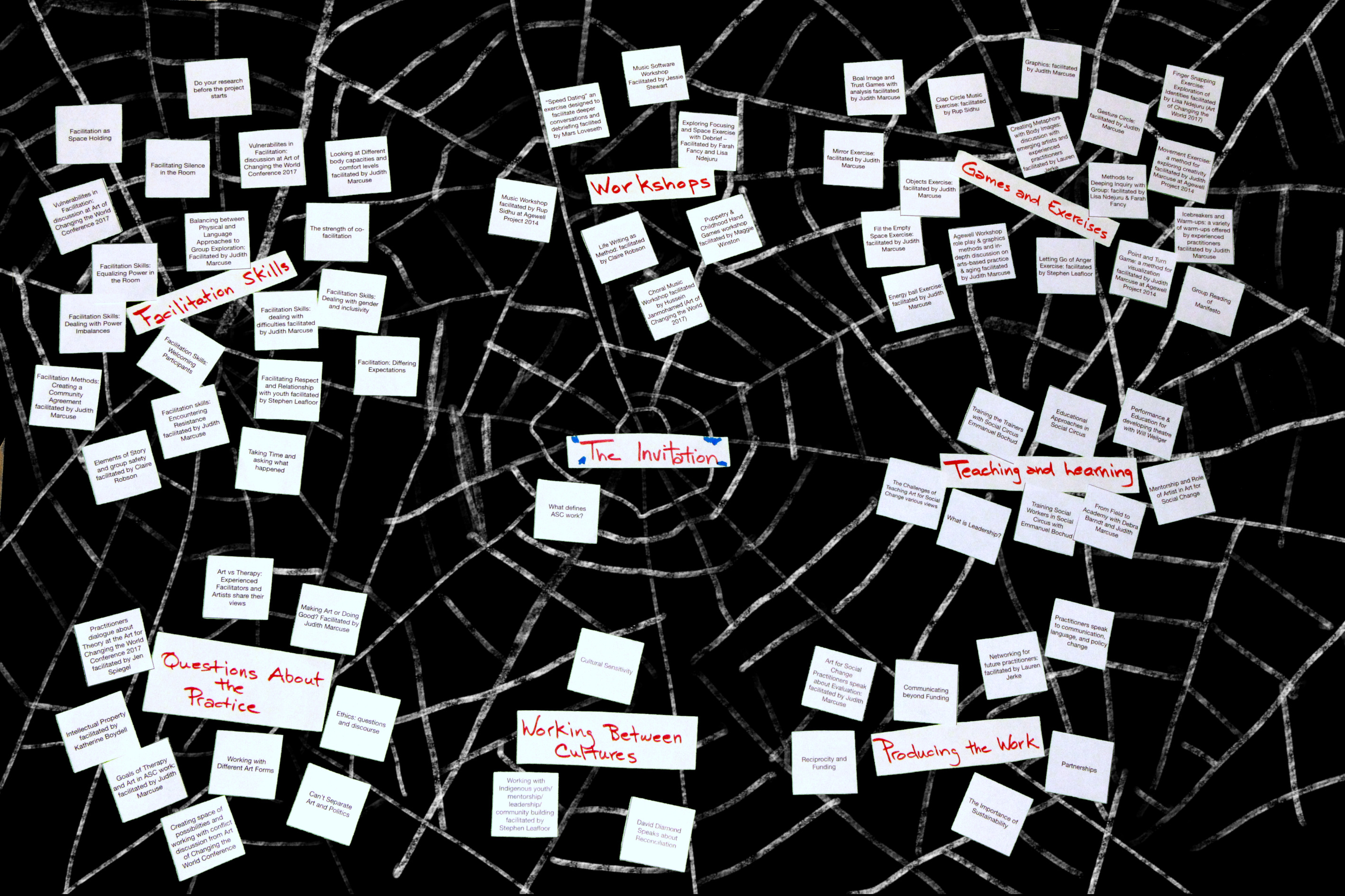 The ASC (Art for Social Change) Web is an interactive web page, a pedagogical exposition and a database documentary about Art for Social Change in practice and theory. 600 hours of video have been cut down to 13 hours of insightful, whimsical, serious and thought-provoking conversation about the practice, production and theory of Art for Social Change.