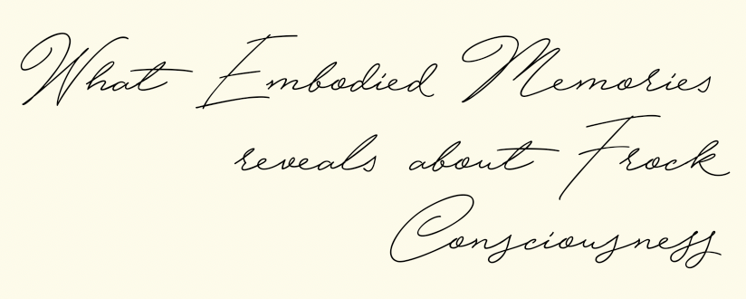 This work explores how frock consciousness endures and effects not just the moment in the clothes, but a sense of who one is as a result of that moment. This is emphasised not just in the descriptions that are joyful, revelling in clothing that was adored but also in moments of despair. Jane’s description of a brooch gifted to her by her then-boyfriend, who she promptly broke up with, in part at the horror that he had misjudged her, in gifting her something so garish, captures that offence one feels when someone we believe should ‘know us’ makes a judgement that is at odds with our perception of self and how we believe we are communicating.