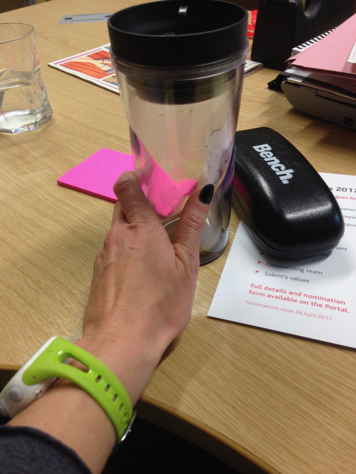 I intended, for three to five days, to go to work fashioned entirely as Sarah. She selected all my clothes, underwear, accessories (I even borrowed her prescription glasses) and props: lunch bag, drinking bottle, coffee cup. She instructed me on styling my hair (our hair is a similar length, texture and colour) and applying make-up, she provided me with her personal care products: deodorant, perfume, toothpaste.
