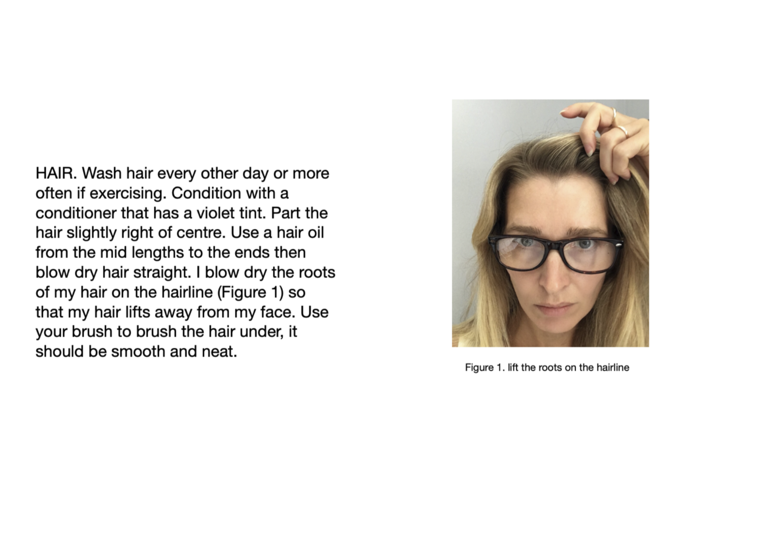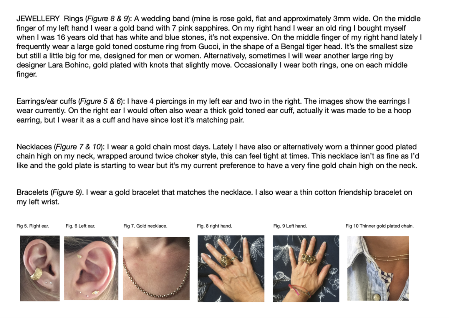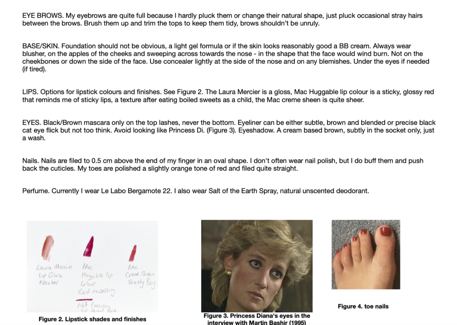 She instructed me on how to wear the clothes she provided, what to wear together, how it should be fastened or left unfastened as well as how I should style my hair and make-up each day. I was in contact with her as I conducted the experiment, she provided guidance where possible, allowing me to defer decision making about my self-fashioning to her. I engaged in my usual activities of teaching MA Creative Direction for Fashion & Beauty, conducting meetings with other staff in the school (some of whom are also fashion subject academics, others who are not) and working in my office.