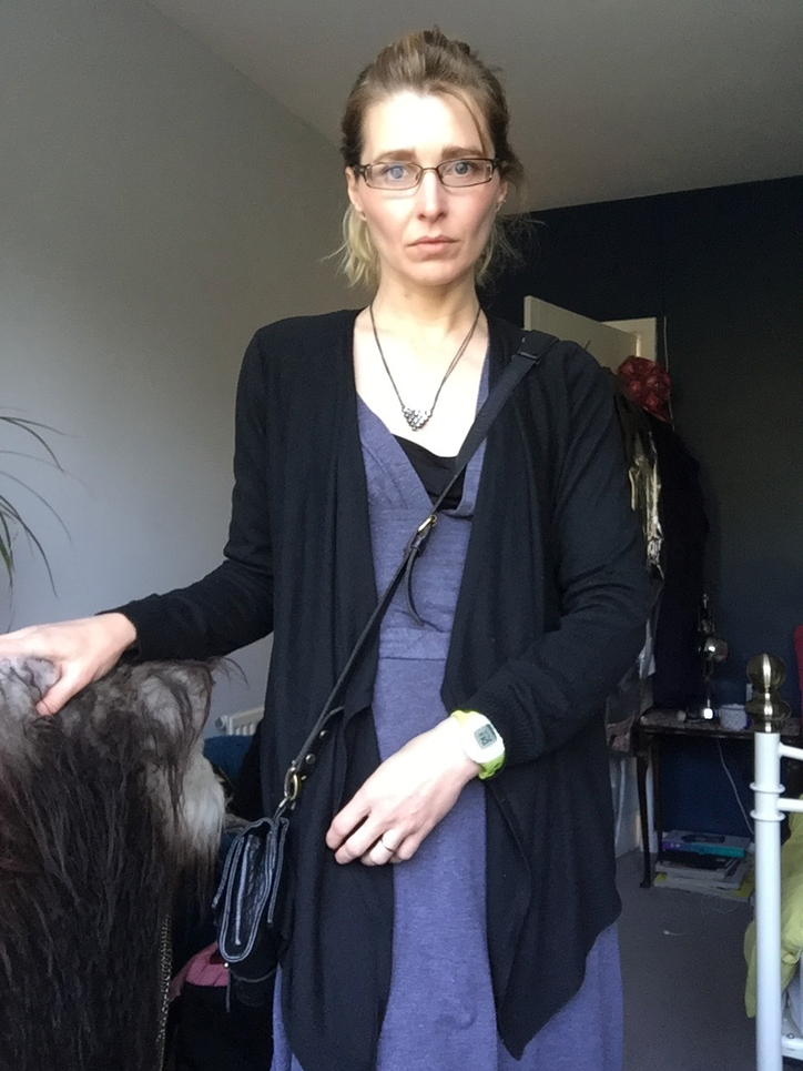 1 pm – with only mascara on I decide I look deathly ill, so put some BB cream, blusher and eyeliner on before an afternoon of meetings as I am concerned that colleagues will think I’m not well. Wearing my leather jacket for big portions of the day over the dress because I’m freezing and Marie didn’t provide anything else, I feel like a Jennifer/Marie hybrid. Putting on my make-up in the loos with the students I feel frumpy and silly in this dress.