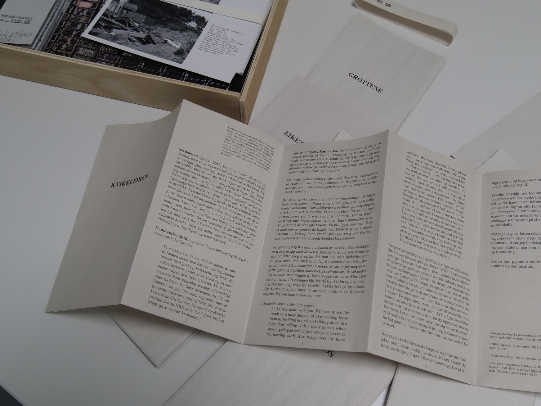 Nord-Trøndelag, Kattmarka 2009: Jeg gikk rundt på den nå inntørkede leiren. Det var gått tre måneder siden skredet og området var forlatt, men husene, bilene og potteplantene lå der fortsatt. Det var først da jeg berørte den gråblå leiren, at kroppen reagerte. Det gjorde meg uvel. I øyeblikket og i etterkant utløste møtet med skredet en rekke spørsmål til mitt eget arbeid med leire, som både gikk tilbake i tid og fremover, i undringer over hvordan jeg skulle utvikle mitt keramiske arbeid. Jeg følte meg plutselig fremmedgjort fra det materialet som jeg tidligere hadde forbundet med fortrolighet og nærhet, og noe jeg mente at jeg behersket, men hva visste jeg egentlig om leire?