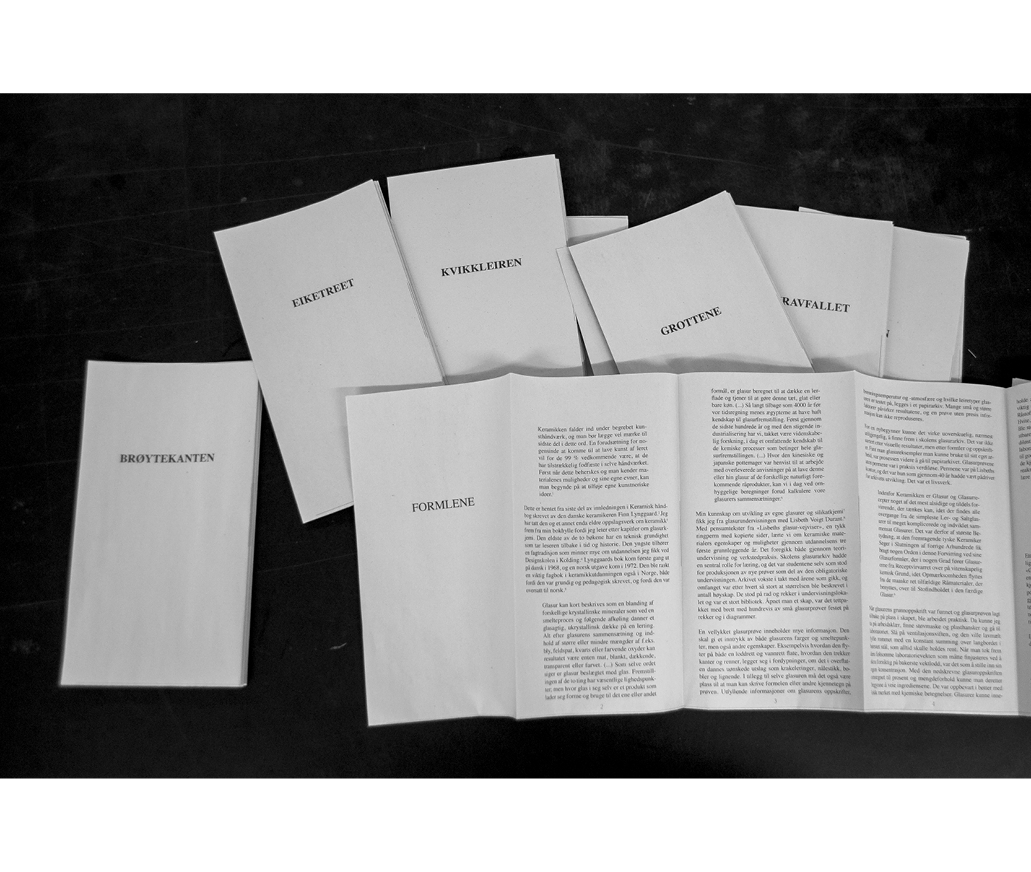 Et fellestrekk i tekstene er at de tar utgangspunkt i noe konkret, derav titler som «Kvikkleiren», «Eiketreet» og «Keramikkovnen». Tekstene er uavhengige av hverandre og kan leses hver for seg. Tilsammen gir de et helhetsbilde av refleksjoner gjort i prosjektet.