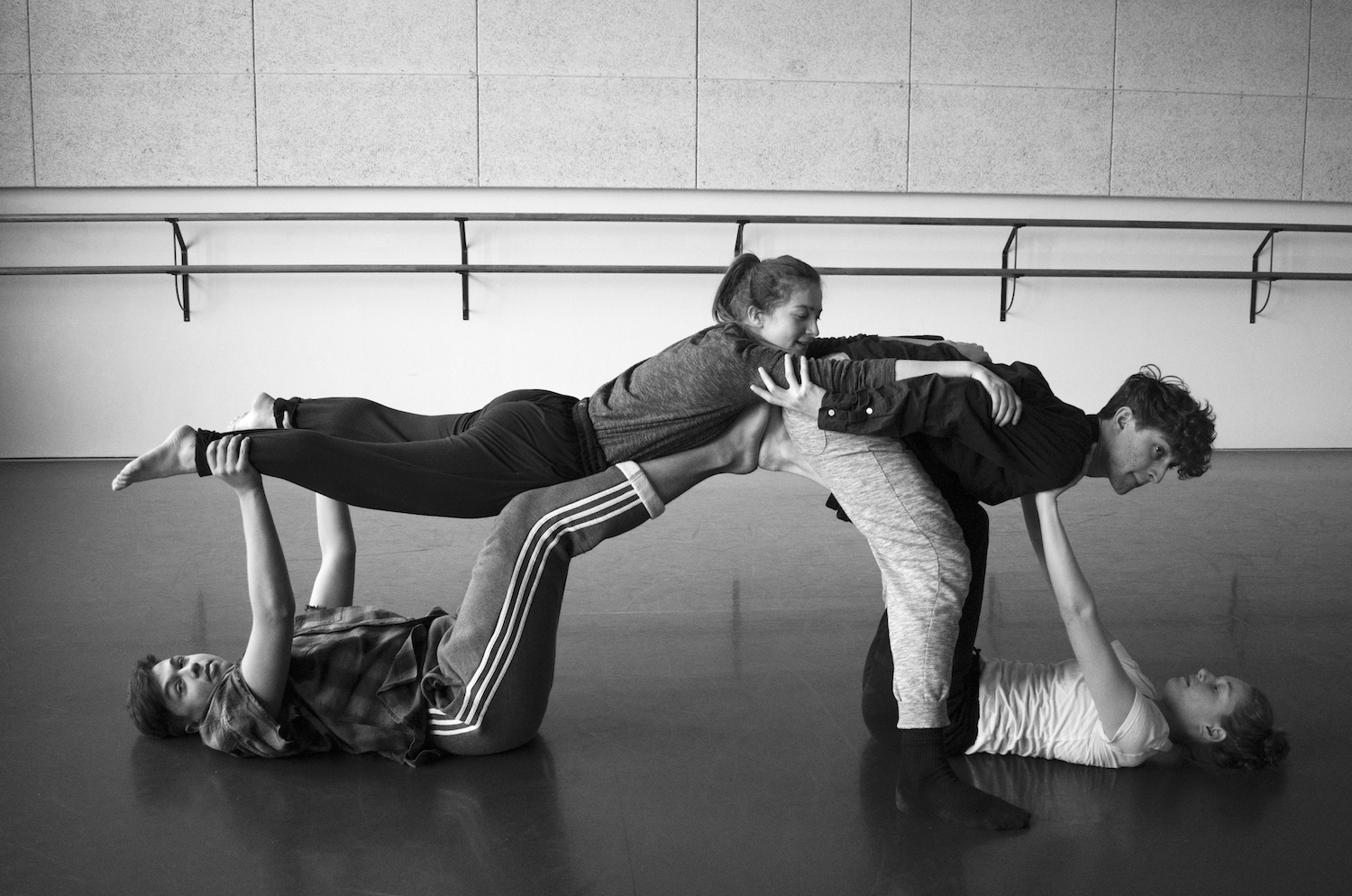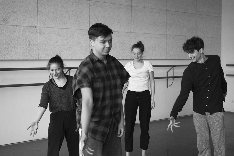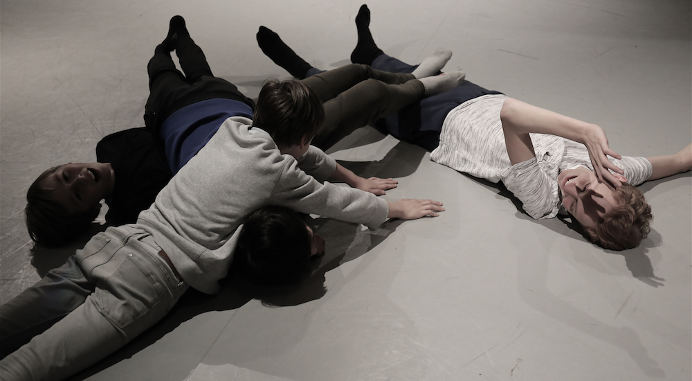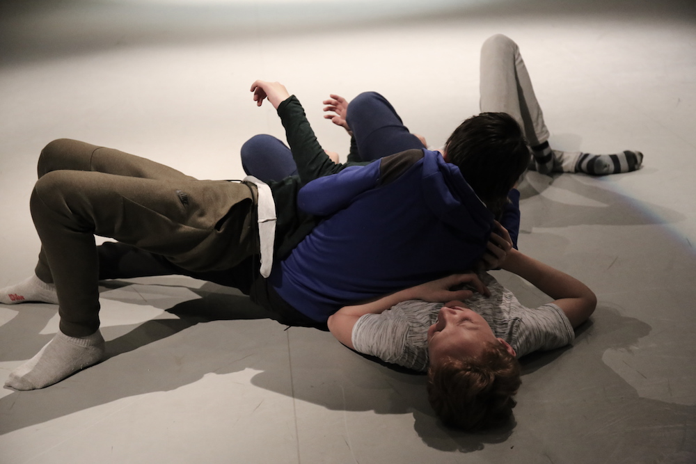 I worked with the modern dance students on re-enactment of the rough-and-tumble play of four boys. I selected set of imagery was then handed over to first year students of the Modern Dance Theatre department at the Amsterdam University of the Arts. The following themes emerge from this working process:a sense of being alive, serious attention to having fun, energy level, joint attention,and the importance of both imagination and touch in this type of play.