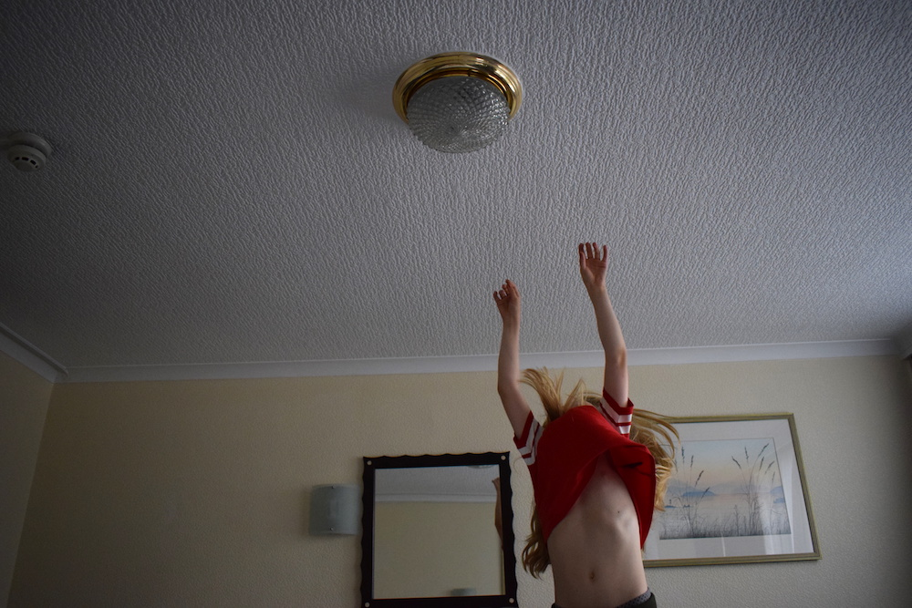 In the first phase of this artistic project I captured several spontaneous dance events of my daughter (Hotel Dance, Living Room Dance and Beach Dance). I became specifically interested in affects, intensities and a sense of being aliveness. This aliveness, I believe, is still present in the pictures.