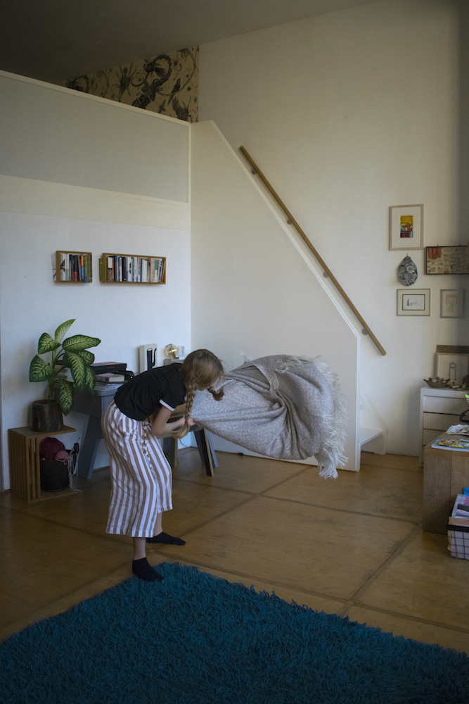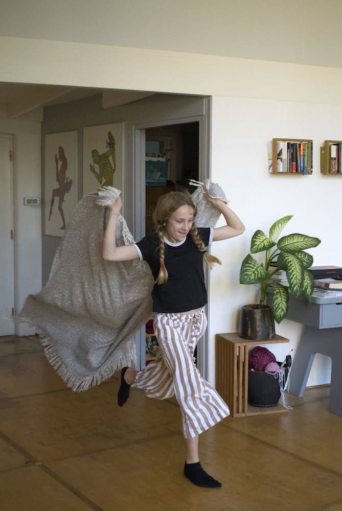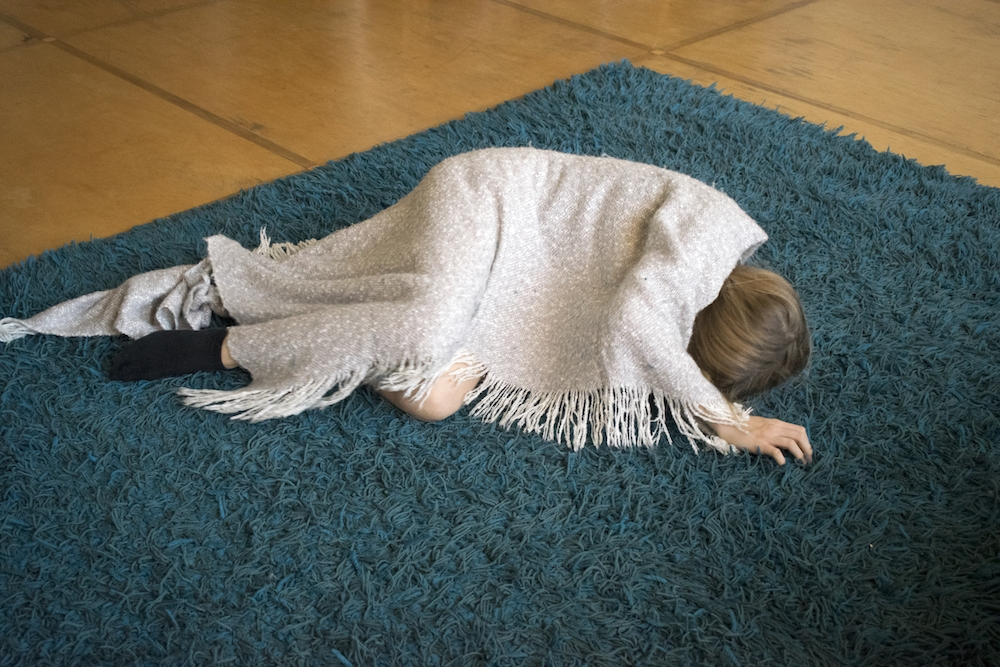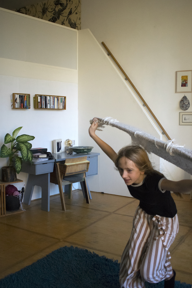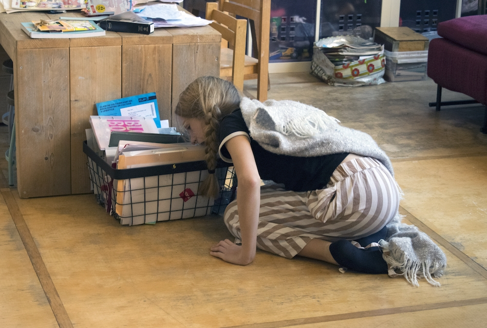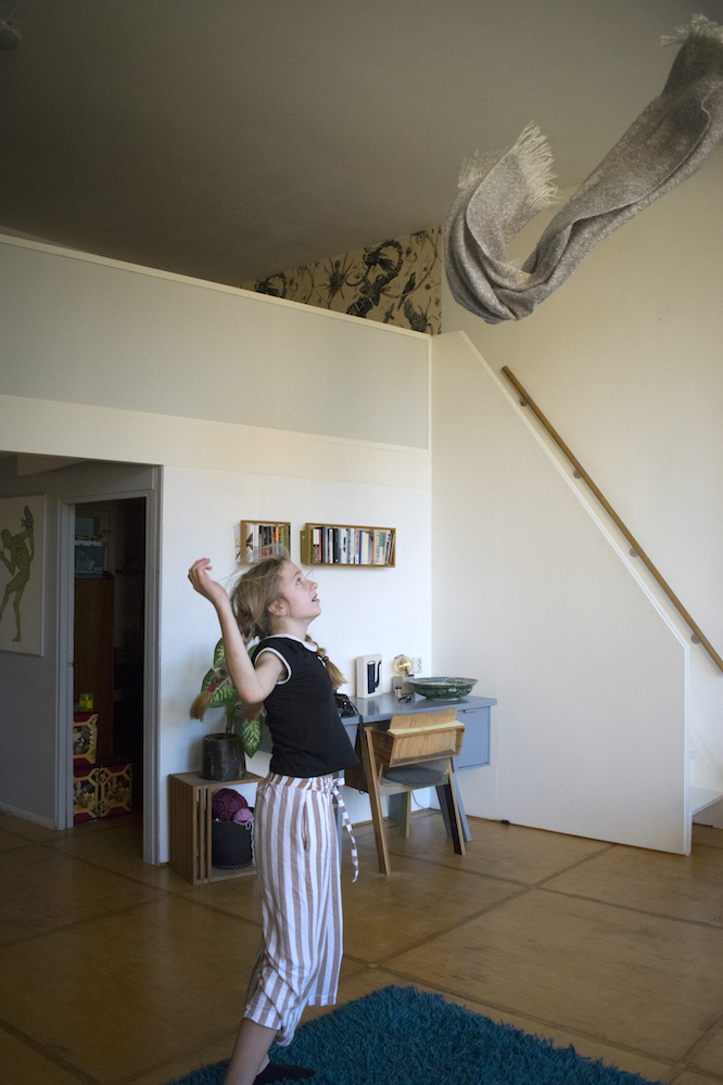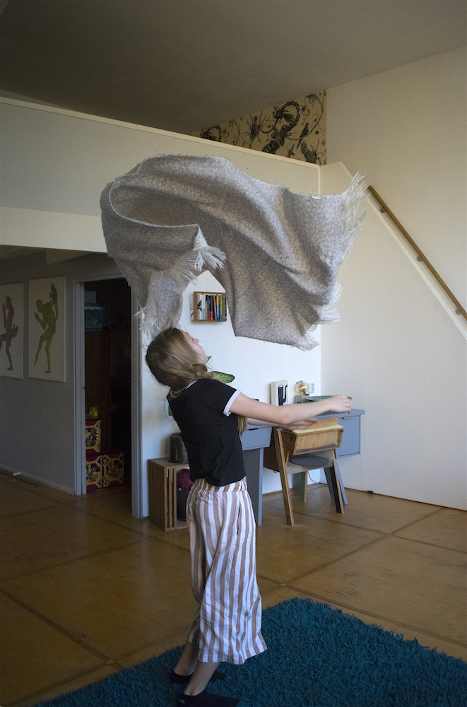 On a Sunday morning Lisa is lying on the big blue carpet in our living room. Just lying. Out of the stillness Lisa spontaneously starts to move. First she does some rolls, then some stretching and along the way Lisa finds a soft blanket that becomes part of her play. ‘I am a bird’ she says, ‘And birds can do whatever they want’.
