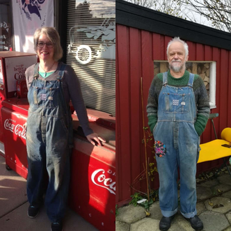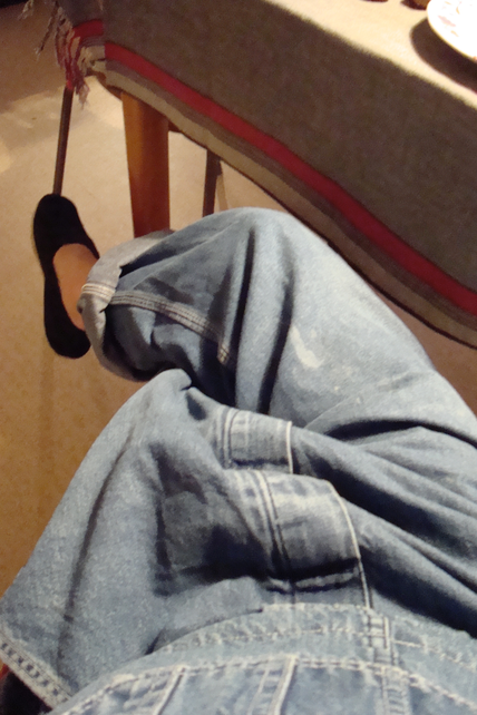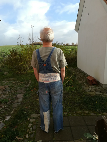 I share, in principle all, my overalls with my overalls sister, Thistle-Evelyn in Vermont just like she does with her overalls. We share them in several ways, wearing them half a year or so before sending them across the Atlantic. We call them for the traveling overalls, and we share them not least also by mending and stitching them, taking one half each.