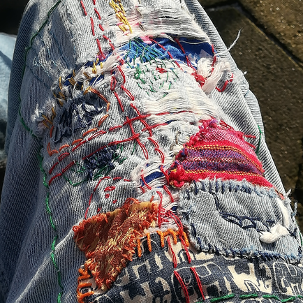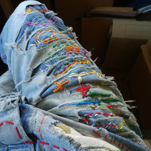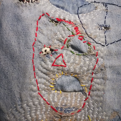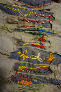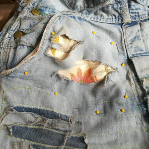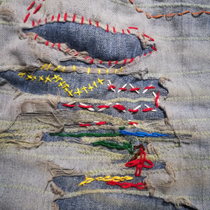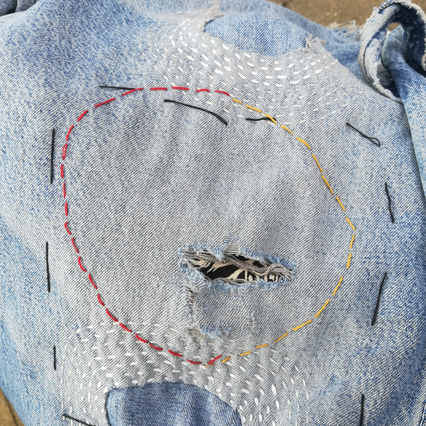 In this project I will explore how clothes, especially overalls, are ageing and through the "breaking in" process become objects in need of mending, and how this can evolve into artistic objects, wearable art.