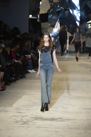 " First appearing in the U.S. in the 1700s and known as “slops,” overalls became the uniform of the working stiff. Over time, their baggy silhouette served as an emblem worn by railroaders and Depression-era farmers — as recalled in Grant Wood’s American Gothic. Later, they became emblematic of 1960s’ hippies, college students of the ‘70s, and even hip-hop and other recording artists, who wore them with one shoulder unfastened. Mick Jagger is no stranger to them, nor is glam rock. Jagger sported a velvety pair, studded with gems, spelling MICK and made eternal in a photo by Herb Ritts. Bib overalls are clothing for the ages."