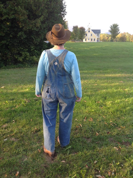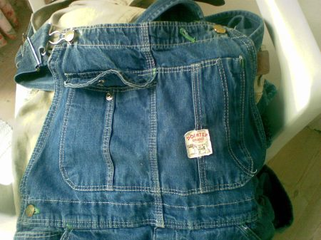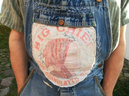 As overalls are ageing and change its colors and textures, they document a history, and as they get stains from being used in work or other human activity they document human life, and as they get mended they document craft and art.