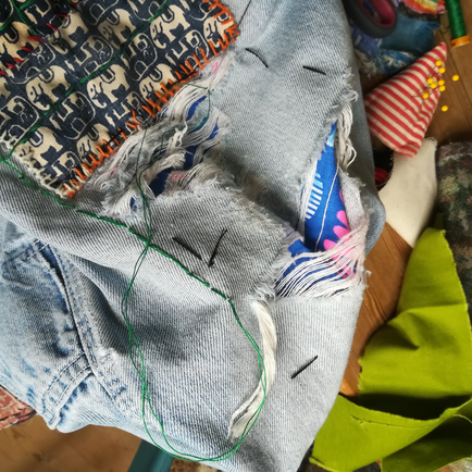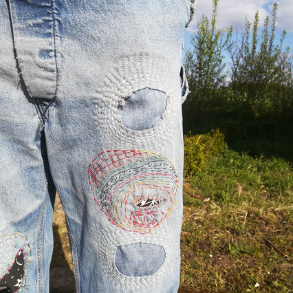 Within the Instagram platform, a project started by Erine @gatherwhatspills with asking all her mending friends of making a patch and swap it with friends, and it turned into a neverending project with more than 100 menders worldwide exchanging patches