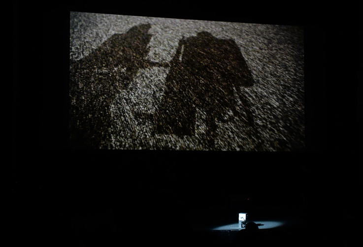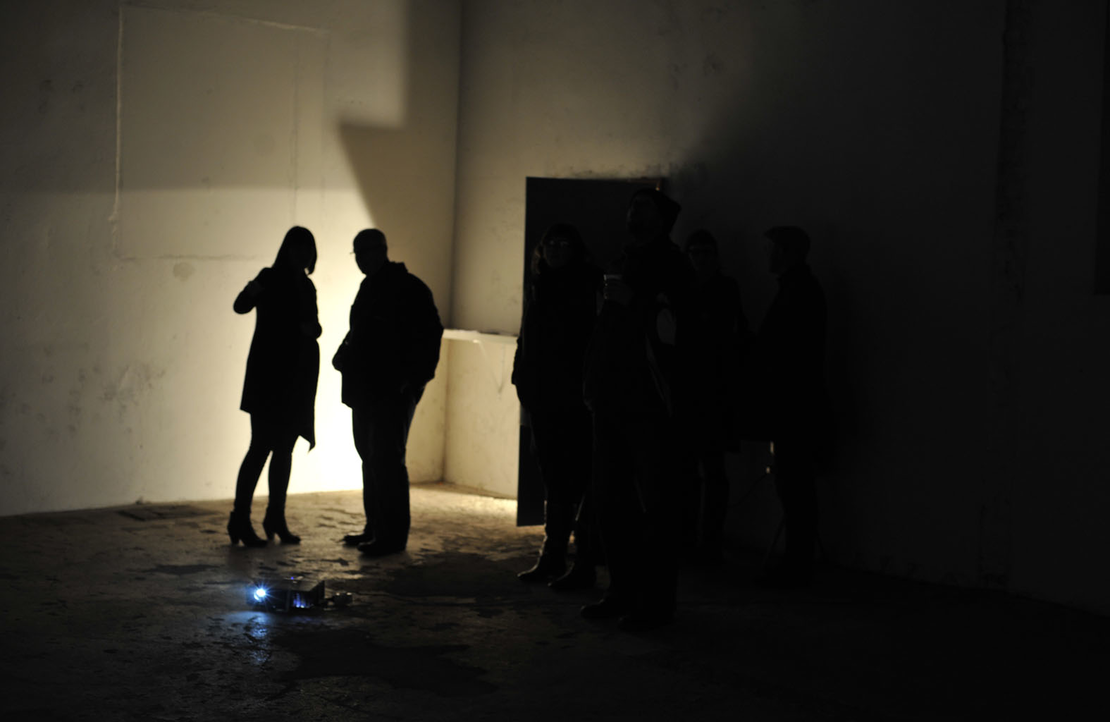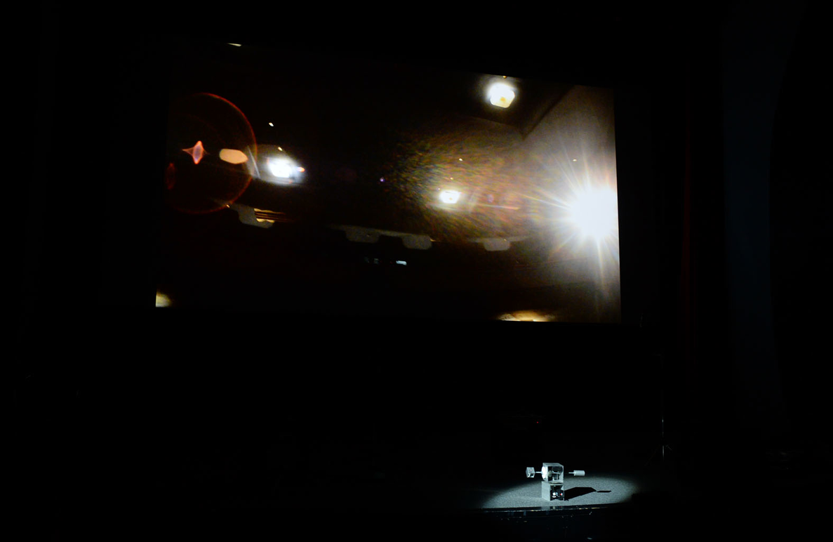 “I not only felt like I became the machine by the power of filmic illusion (when looking at the projection, I felt as I was moving with the rig), but also because of my relation to the laser pointer attached to the rig, I was becoming incredibly aware of my existence and position within the room, and within the filmic space depicted in the projection.” (Audience feedback)