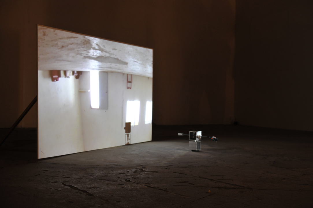 The 360-degree movement of the field of vision affects the audience's relationship with physical space and time. This work questions the act of perception and the definition of time, space, surface, and material, and it forces the spectator to return to her/his own capabilities for meaning-making.