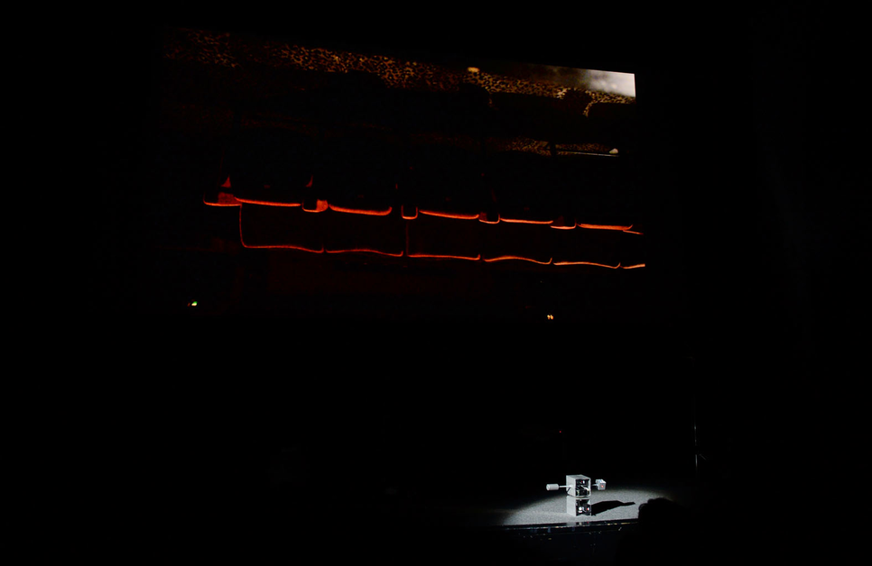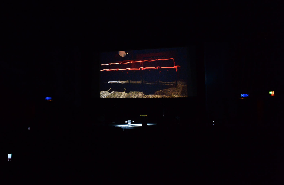 Reference Rio explores the Rio cinema in London, an independent art cinema constantly under threat of closure. The cinema is first filmed using the 360-degree rig, recording every detail of the empty architectural site, with the house lights on and the curtains closed. The pre-recorded film of the auditorium is then projected onto the cinema screen. The same rig is then used to track the movement of the recording device, by replacing the camera with a laser. As the audience ‘maps’ the projection to the laser within the ‘physical’ cinema space, a complex relationship occurs between artwork, audience and site.