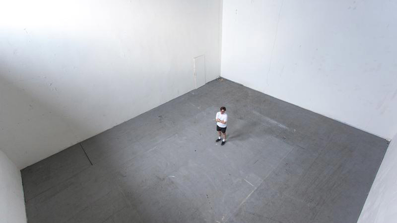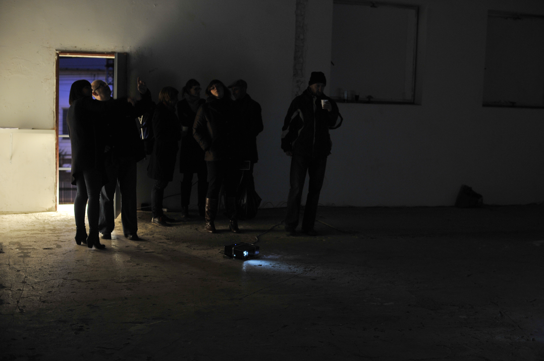 Kostka performs one of the galleries at MeetFactory (centre for contemporary art) in Prague. The gallery is shaped as a cube (cube = Kostka in Czech), converted from what used to be the boiler room of a technical glass manufacturing works. The 360-degree motorised rig is placed in the centre of the space and records the visuals and sound of the empty gallery. The footage is projected on a large floating screen, presented in the centre of the space when the room is cleared and in darkness. The represented image comes into critical conjunction with the actual space of the gallery and the pre-recorded sounds on speakers around the space amplify the acoustics in the room, without using pre-recorded material from elsewhere. Kostka exposes the space sound itself and allows the audience to experience what happens when your attention is drawn to the actual sound of the room. Sound promotes the coherence of the visual representation of site and tells us what we feel about what we see. Field recording is more than simply recording sound in situ, it decontextualizes sound, lifting it out of place and sending it into wider circulation.