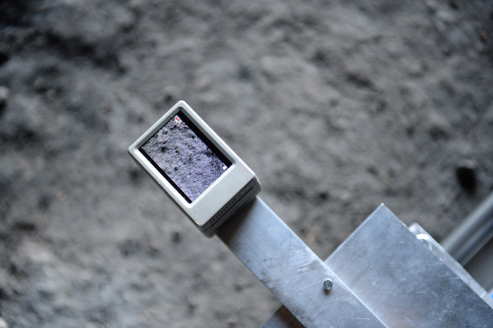 In the early stages of this research I had been drawn to Winspit, mainly due to the quarry floors moonlike terrain. I had wanted to capture the materiality of the site, in contrast to how the site had previously been filmed as a background location for TV productions. In order to draw attention to the moonscape interior, an iPad was mounted on a motorised buggy that travelled across the quarry floor recording the detail of the terrain. The results were interesting but it was difficult to control the speed and direction of the buggy so it was developed using a fixed track.