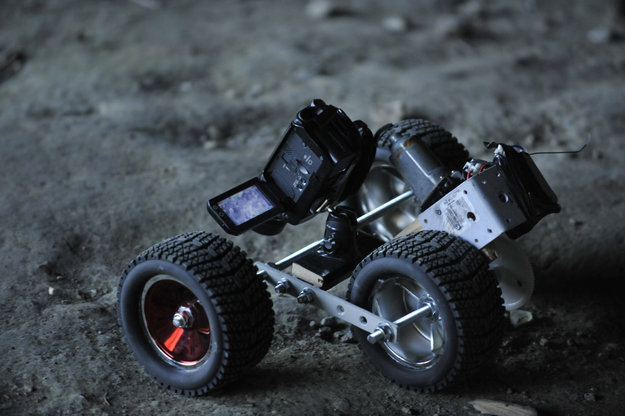 In the early stages of this research I had been drawn to Winspit, mainly due to the quarry floors moonlike terrain. I had wanted to capture the materiality of the site, in contrast to how the site had previously been filmed as a background location for TV productions. In order to draw attention to the moonscape interior, an iPad was mounted on a motorised buggy that travelled across the quarry floor recording the detail of the terrain. The results were interesting but it was difficult to control the speed and direction of the buggy so it was developed using a fixed track.