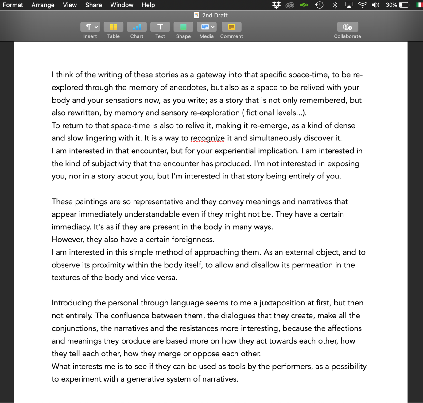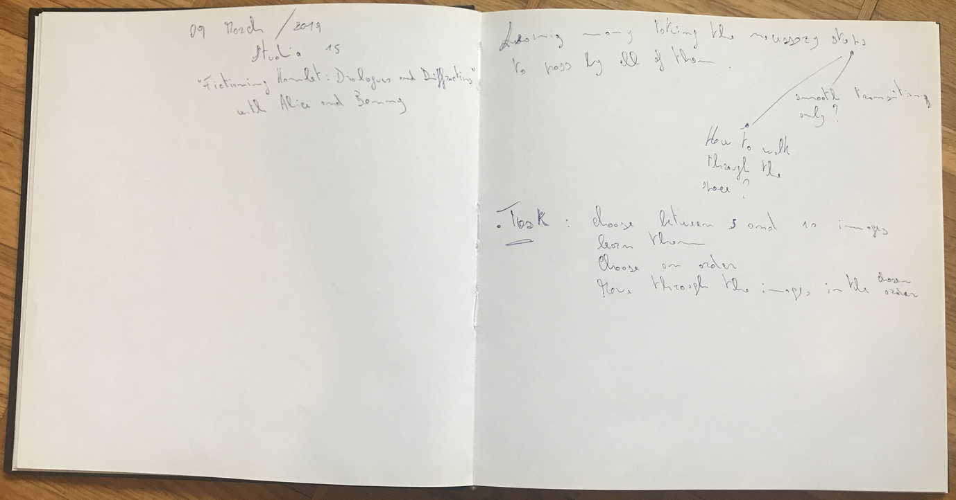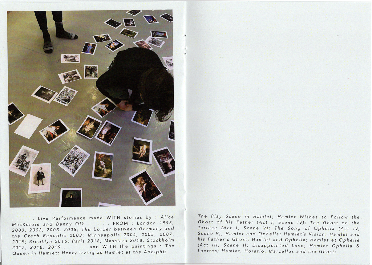 The performance of Alice and Benny consists in telling stories based on personal memories and anecdotes, while reproducing gestures derived from a selection of historical paintings of Hamlet and Ophelia. We experiment with the juxtaposition of these materials, the personal and subjective experiences with the reproduction of images, and with different modes of relation to the public. We observed what kind of dialogues are created by these juxtapositions, how they act towards each other, how they narrate each other, how they merge or oppose each other, and how the production of affects and meanings is based on the social.