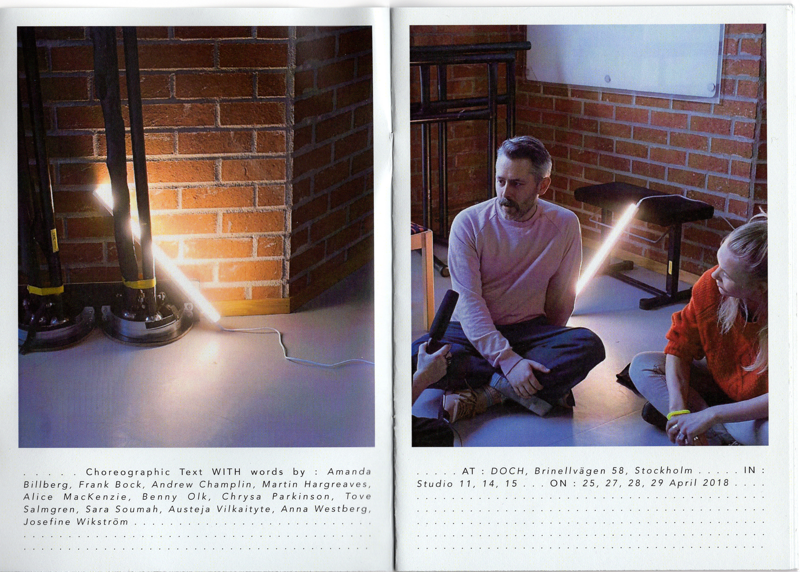 The transcription of these interviews became the source material for one choreographic text that contains the multiple voices brought into ‘dialogue’ with each other.