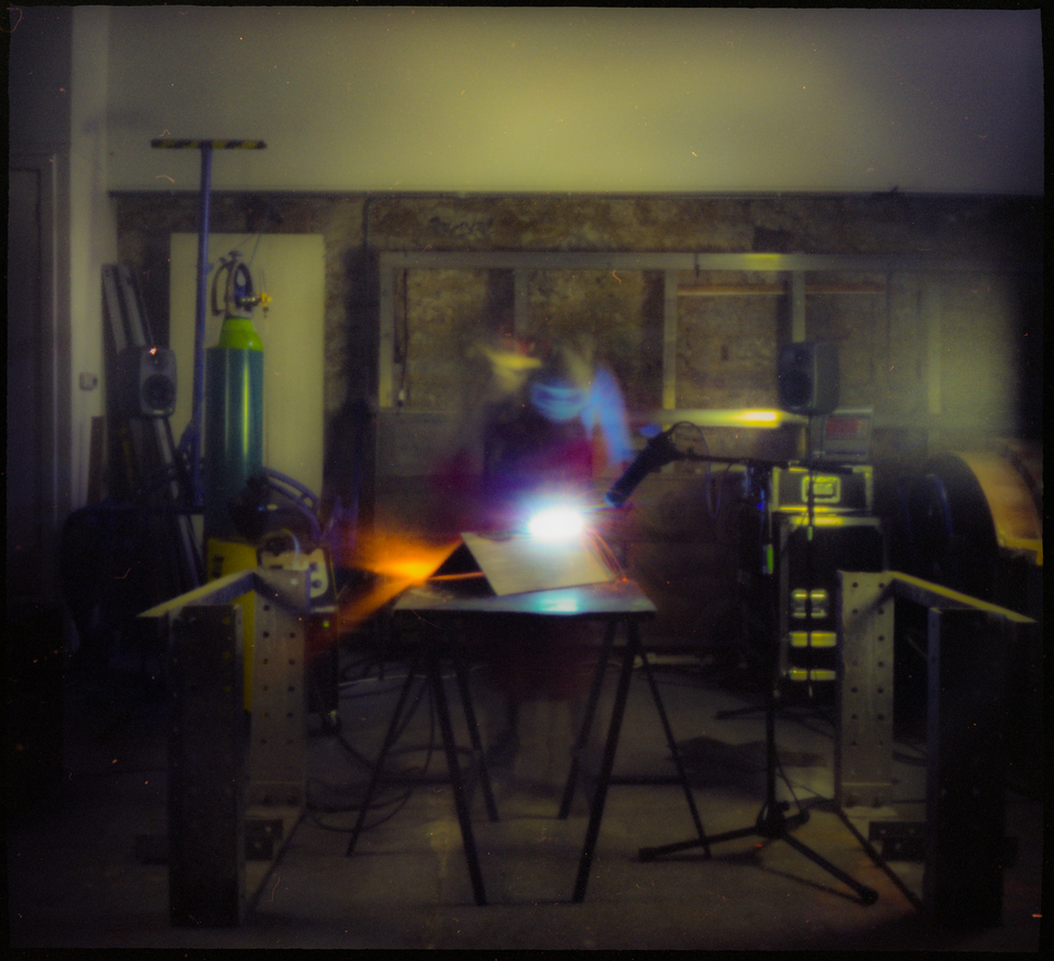 "Welding", performance 'Process/Procedure' by Eleni-Ira Panourgia, April 2018, University of Edinburgh. Film 120 Fuji Pro 160S on a Noon Pinhole 12 Camera. Developed, scanned and processed by Sam Cornwell.