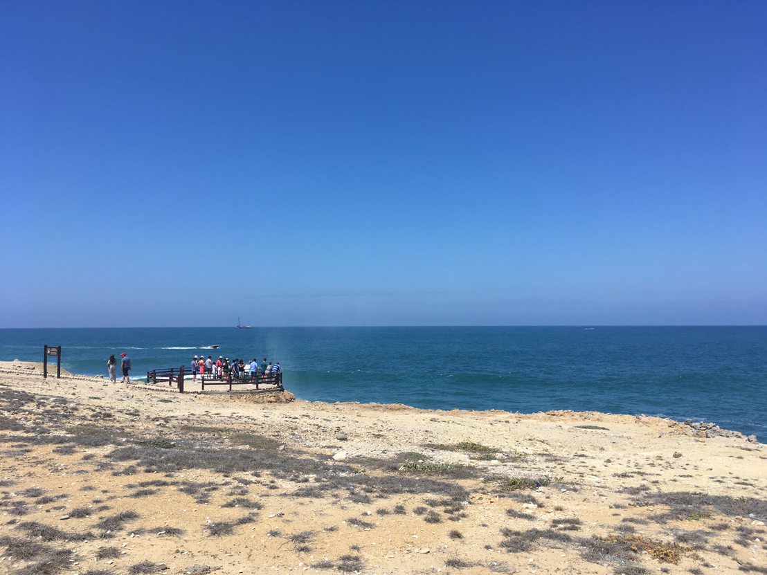 As it glides over the deep, briny sea.