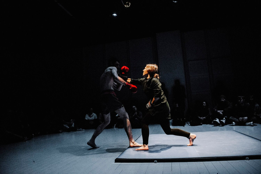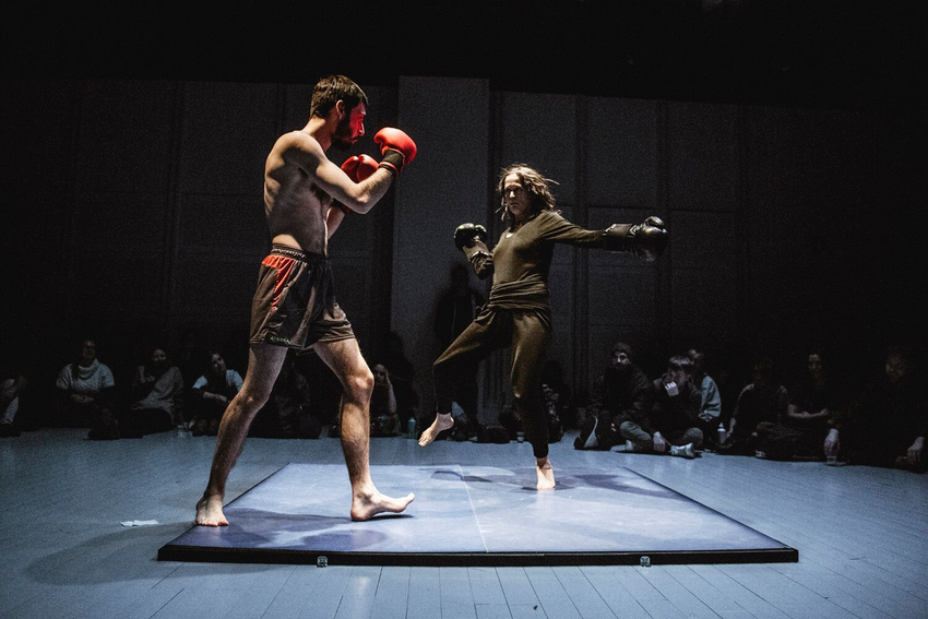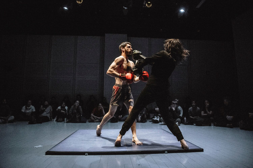 Toxic masculinity usually occurs largely in a vocalized language; however, it was the first impression I got from Boudeau’s opus: Chaos. What do we do when 'sensitive' issues or current issues get manifested or performed in the context of performance? What does it tell us? I reckon toxic masculinity was not the central concept of Claude Boudeau’s work, it was not even at its periphery. But, if it gets implied, I am happy that Boudeau pointed it out indirectly to us. Could he be urging us to do something about this topic and to be more conscious and aware that this is a real issue and not an augmented or virtual issue? Although during the performance I was concerned that his action-making could escalate into some kind of violent encounter, I saw that his deference to his ‘sparring partners’ was imminent.