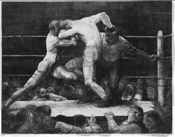 What underlies the attraction to such violence? Why choose to depict such a subject? David Curcio in 2015 wrote an article about The Boxing Lithographs of George Bellows at The Boston Public Library: