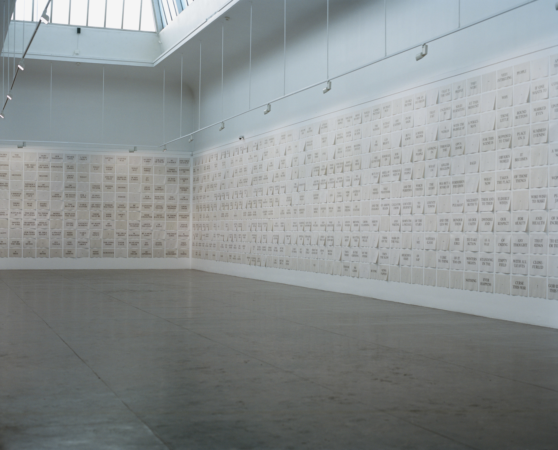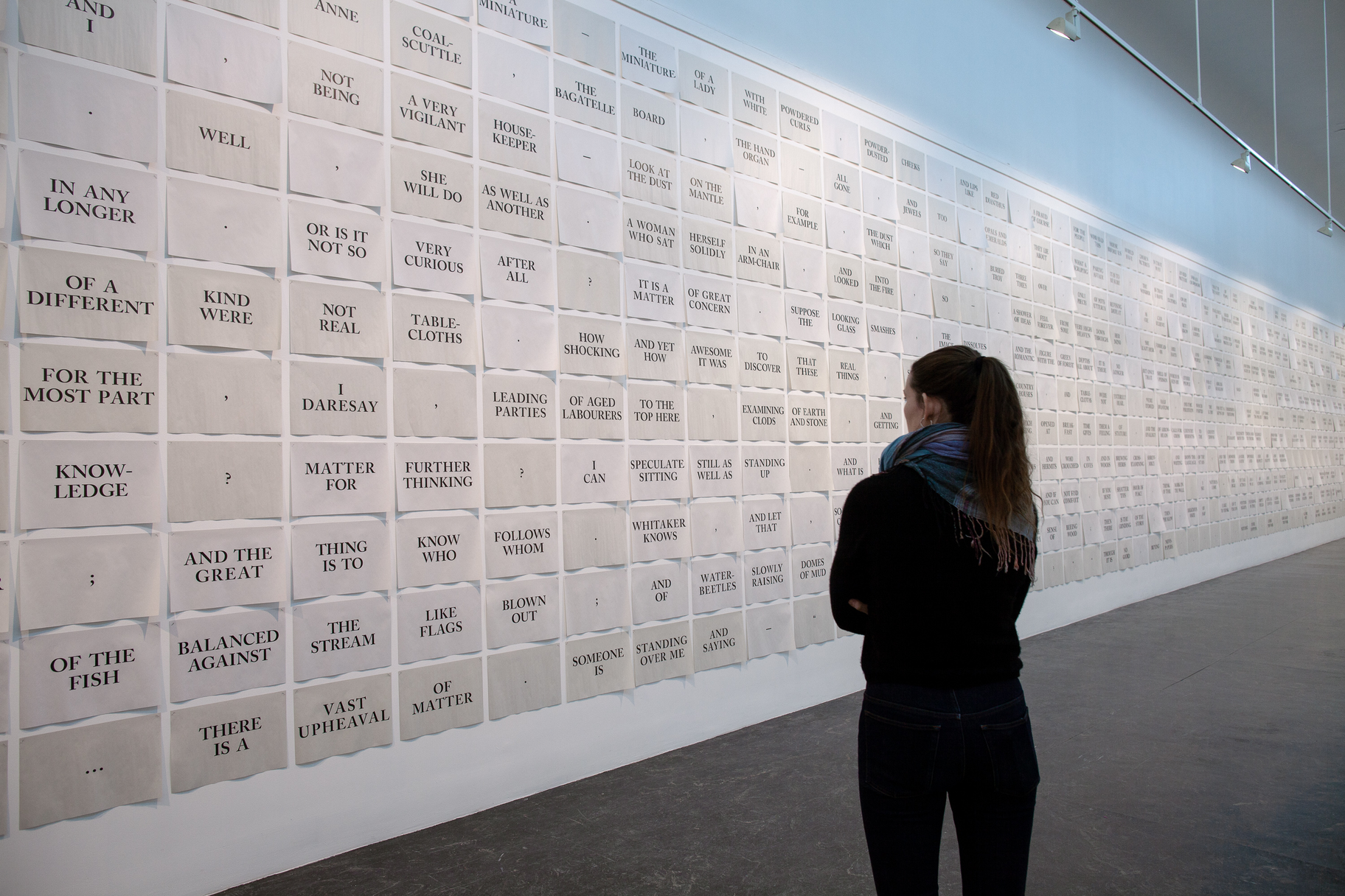 Denne timelapsen er dokumentasjon av de 3 månedene det tok å sette og trykke Virginia Woolfs The Mark on the Wall(1917). I denne adapsjonen nærleser jeg novellen, ord for ord, og oversetter den fra boken (Two Stories) til et eget rom (Fra døren i eget trykkeri til overlyssalen på Kunstnernes Hus). Novellen kan leses i kronologisk rekkefølge, trykk for trykk, på døren midt i bildet.