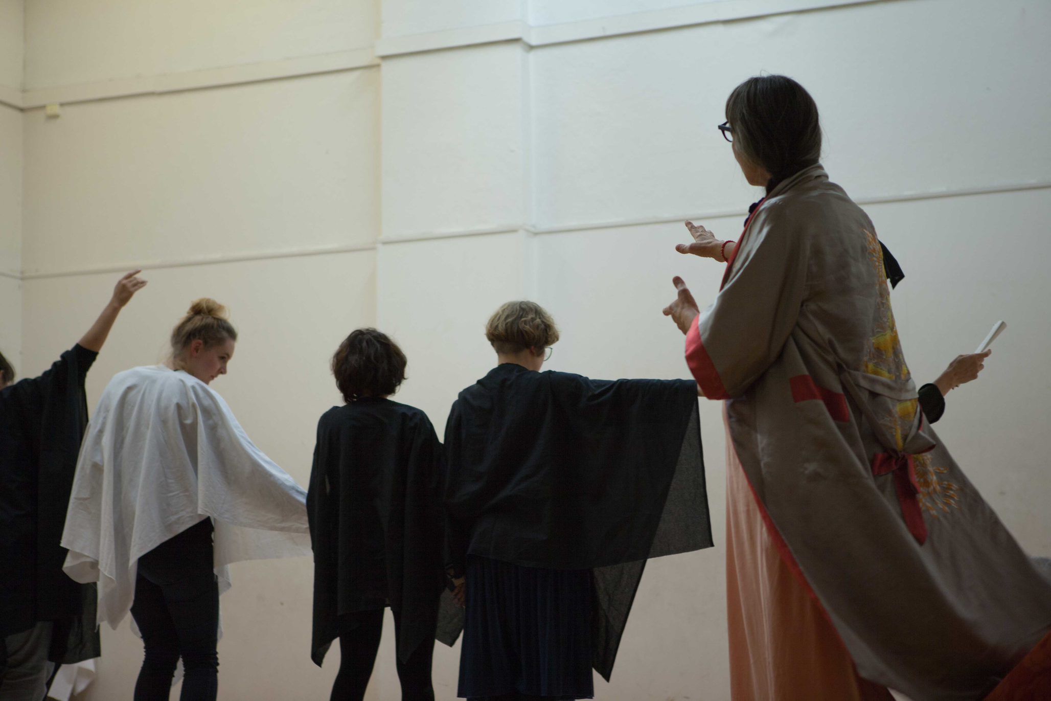 Lucia: Well, we discussed a lot. I think it worked because it was a lot of pre-communication between us about how to work in this format. Yesterday it was much more about the ideas and today it was more about mixing these ideas — and the body. Today we had a warm-up for the second part of the day, about establishing a common bodily rhythm. There could be a thousand ways to do this, but when you rehers it, and you discuss it, everyone understands in their own way. This kind of communication worked very well, it was a language. It has been very much about language these two days, any kind of language.