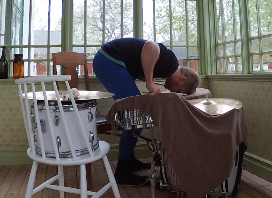 Apart from the drums and voice being fundamental instruments, I find that the bodily shift of playing the inverted drums while using the voice, is an effective way of short circuiting superego and technical focus. Therefore, I have chosen them as the main tools for EoD. And as mentioned, in an early vision of myself as a musician, I was playing the drums and singing. It seemed, and still does, completely ideal to me, and I am happy to be moving in that direction.